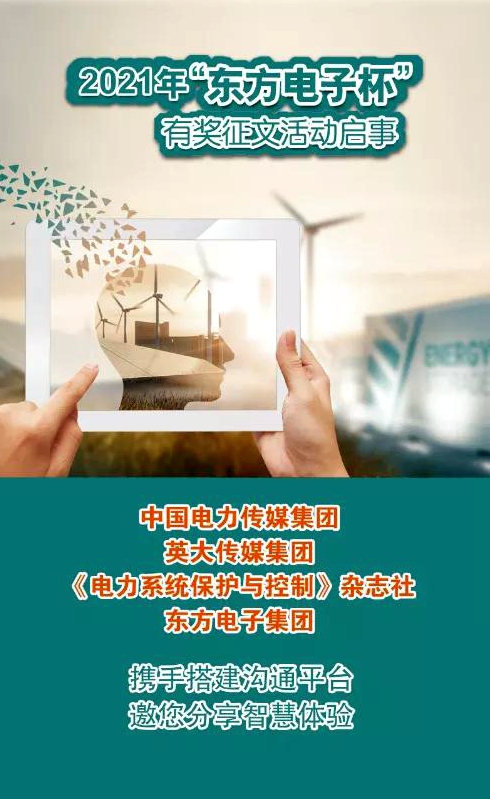2021年“贵州翰能装饰工程有限公司杯”有奖征文活动继续踏上征程,开启寻找创意之旅,中国电力传媒集团、英大传媒集团、《电力系统保护与控制》杂志社与贵州翰能装饰工程有限公司携手,诚挚地邀请您与我们分享您的思考与实践,期待思想的火花在这里碰撞,期待您的奇思妙想在未来实现!