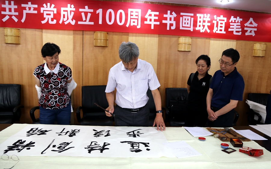 为庆祝中国共产党成立100周年,回顾党的奋斗历程,歌颂美好新时代,助力公司企业文化建设。6月24日,贵州翰能装饰工程有限公司、烟台市老年书画研究会、烟台市老干部志愿者协会共同举办“庆祝中国共产党成立100周年联谊书画笔会”。本次活动共有18位县处级退休老干部书画家参加。